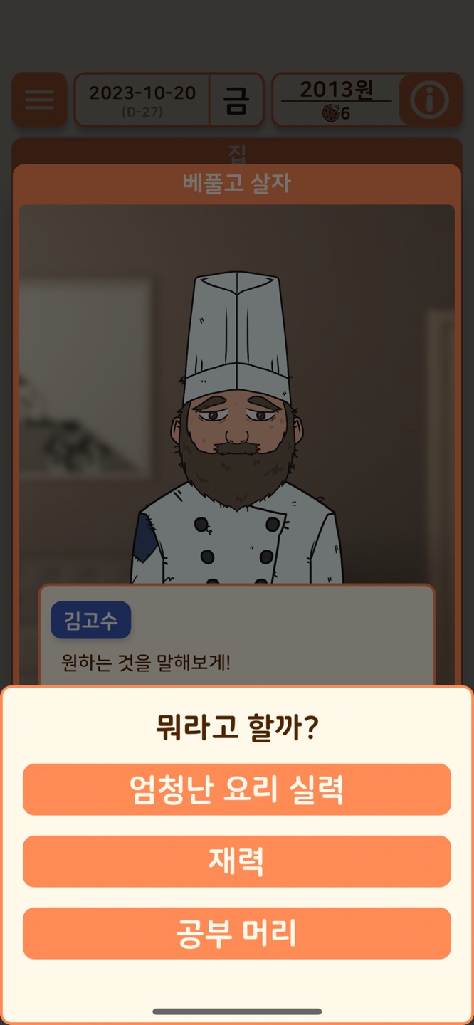 성적이 그다지 엄청 좋지는 않았지만 원하는 대학과 과에 입학하게 되어서 만족도 높았다. 떨어지더라도 좋으니 이런 식으로 일일 퀘스트에 도전해 보는 플레이도 좋다고 생각한다. (도전해 보세요!😀) 그럼 오랜만에 수험생 키우기 플레이를 해봤다.