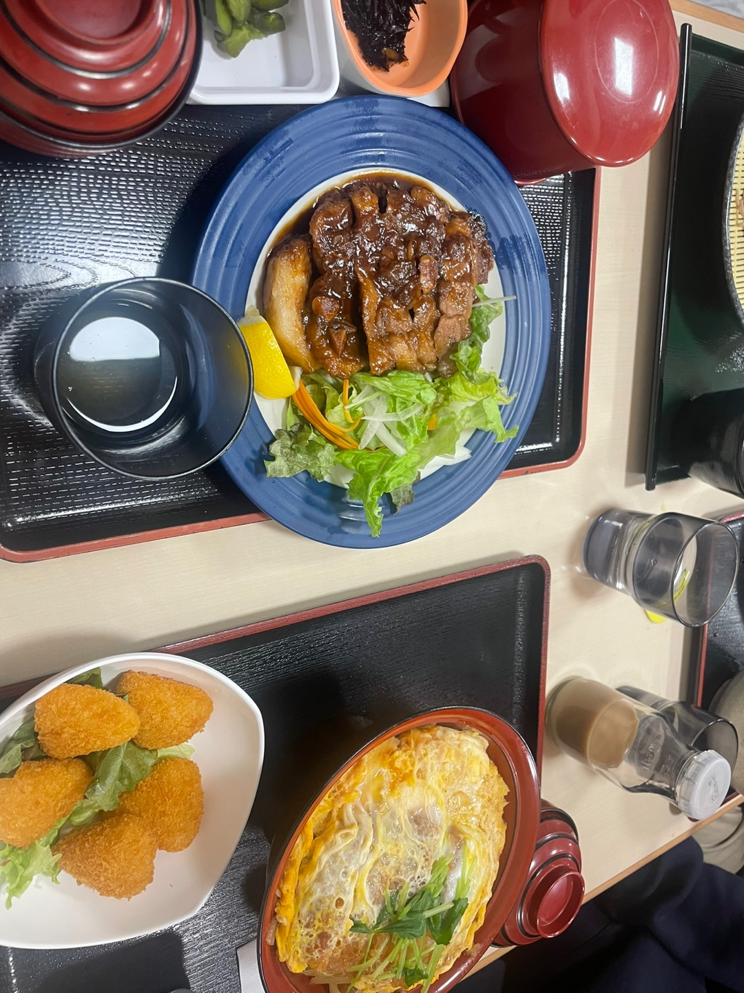 자판기에서 녹차 하나랑 사케동같은 걸 먹고 싶었는데 그냥 고기를 먹기로 했고 같이 간 일행들도 이것저것 시켜서 맛있게 먹기로 했다. (일본 음식은 나랑 너무 잘 맞는다...😶)