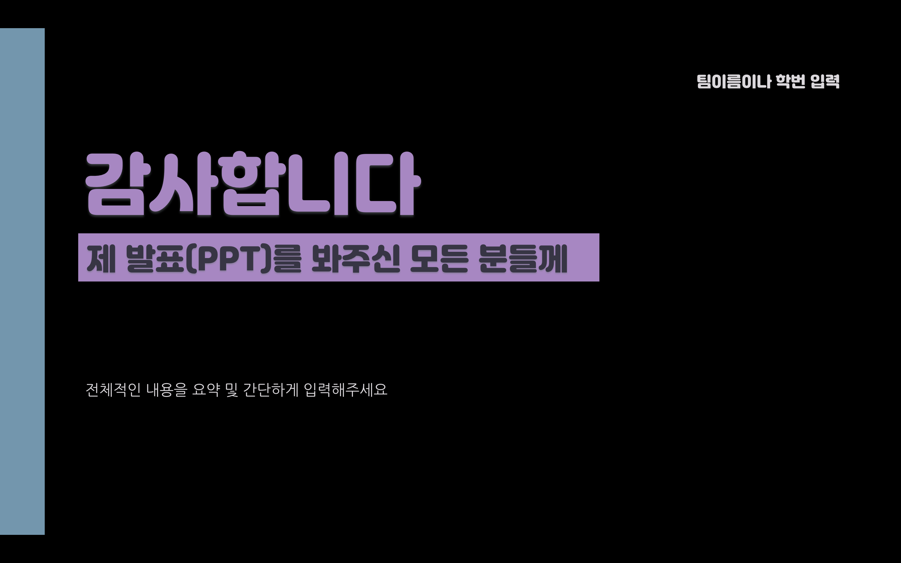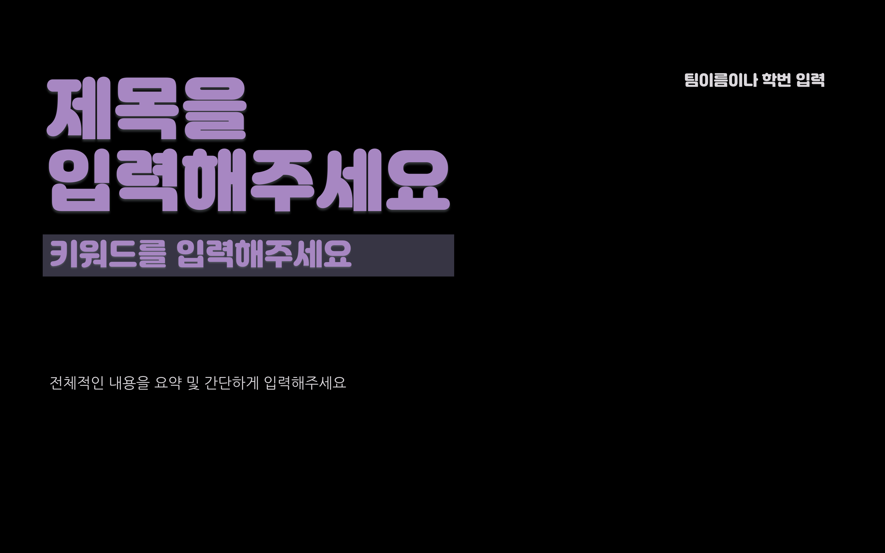 색 수정하고 본인이 발표하는 내용에 따라서 자유롭게 수정할 수는 있지만 상업적으로 이용하시면 안 됩니다. 모든 디자인 제작자인 저에게 저작권이 있으며 개인적인 용도로 사용하시기 바랍니다. 무단으로 배포할 수 없고 수익 창출 불가합니다.