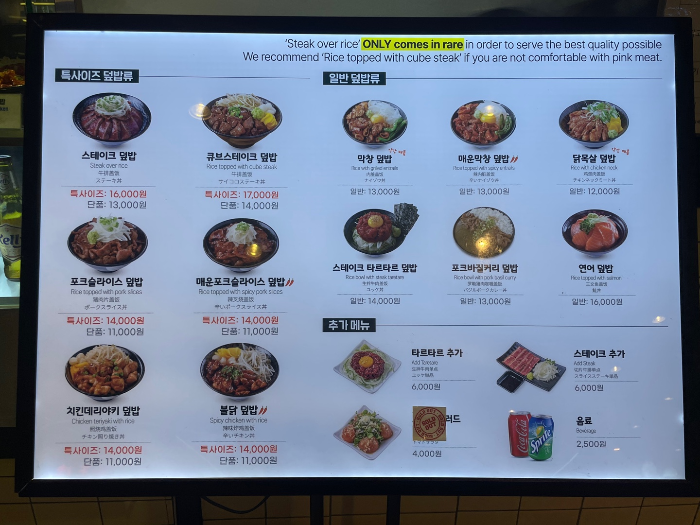홍대개미에서 스테이크 덮밥을 이전에 먹은 적이 있는데 별로였던 기억이 있다. 그러니까 딱히 맛있다고 못 느꼈달까. 그래서 다른 메뉴를 먹어보자하고 치킨데리야키 덮밥 단품으로 11,000원에 주문했다. (특사이즈:14,000원)